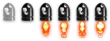 Кнопка наверх выполненная в виде ракеты с эффектом огня